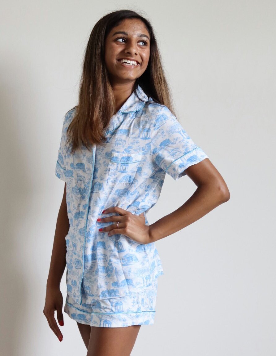 Cuddle up in these buttery soft pajamas and sleep in Carolina Blue comfort. Tar Heel toile pajamas feature UNC Chapel Hill's most historic and beloved landmarks. Nothing Finer pajamas designed and produced by a UNC grad and Chapel Hill resident. Every Carolina fan will want a pair of these!